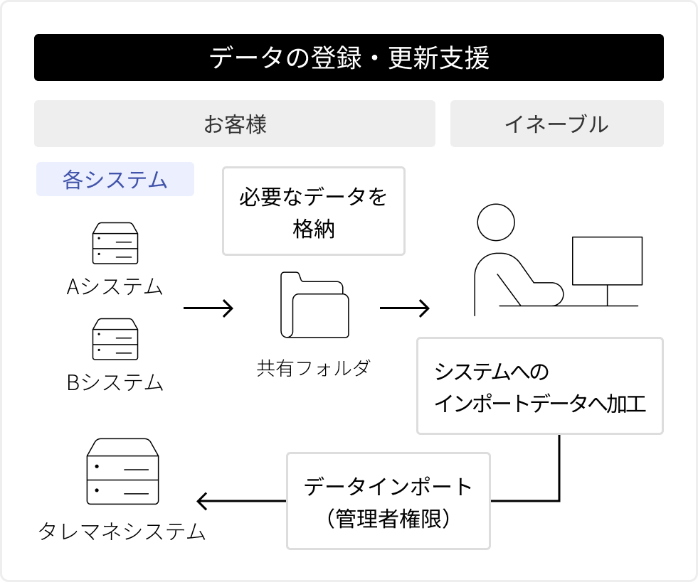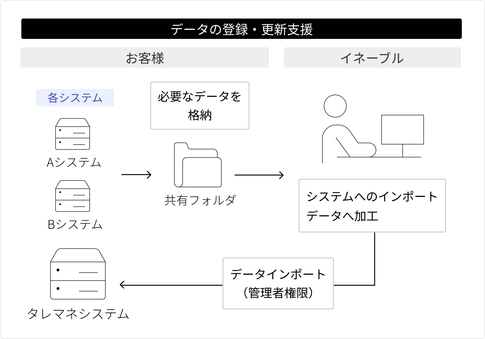 弊社のスタッフがシステム設定からデータの加工、インポートまで対応